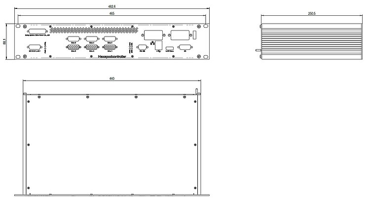 6-Achs-Controller für Hexapoden, integrierte Treiber für BLDC-Motoren, TCP/IP, RS-232, Gehäuse 19" 2 HE, Analogeingänge
