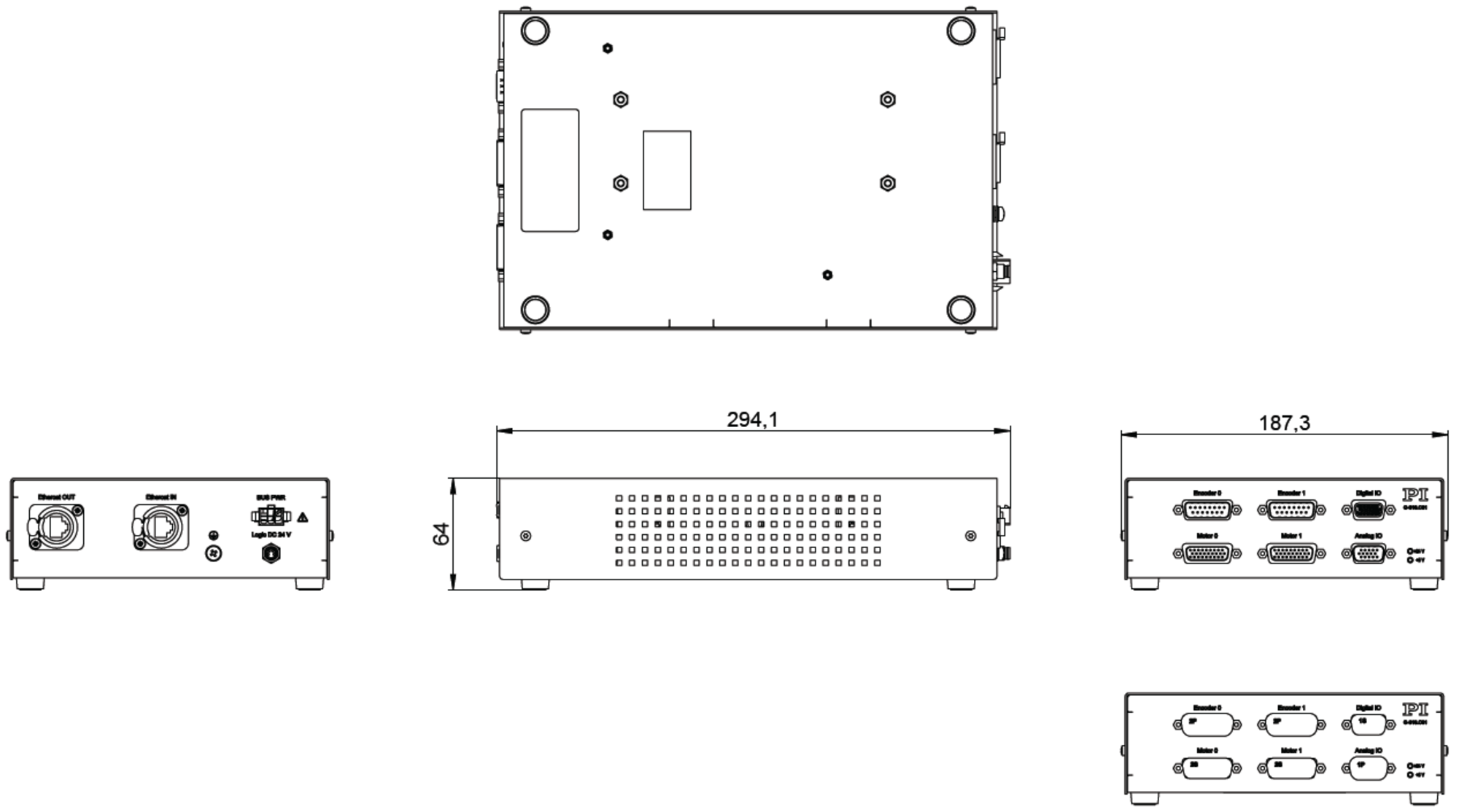 | Sensoranschluss | 2 × D-Sub 15 (m) oder 2 × über die MotoranschlüsseWerkseitige Standardkonfiguration bei Auslieferung:Digitaler inkrementeller Encoder (RS-422) oder Absolutencoder auf MotoranschlussInkrementeller Encoder 1 Vss auf D-Sub 15 (m)Werkseitige Standardkonfiguration bei Auslieferung:Digitaler inkrementeller Encoder (RS-422) oder Absolutencoder auf D-Sub 15 (m) | ||