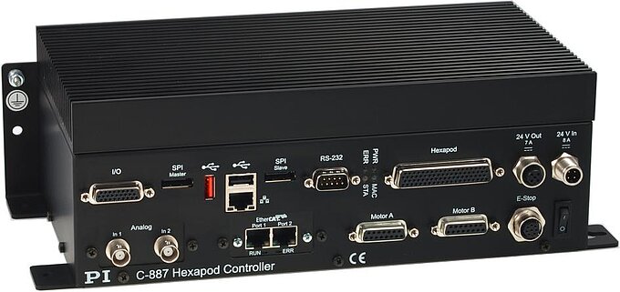 Der Hexapod-Controller ermöglicht eine einfache und intuitive Ansteuerung parallelkinematischer 6-DoF-Systeme: Alle Zielpositionen können in kartesischen Koordinaten kommandiert werden. Die Berechnungen für die Ansteuerung der einzelnen Beine und der daraus resultierenden gewünschten Bewegung der Plattform übernimmt der Controller.