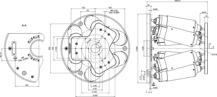 | Aktive Achsen | X ǀ Y ǀ Z ǀ θX ǀ θY ǀ θZ | |