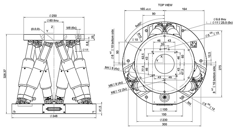Präziser Hexapod; DC-Getriebemotor; Rotationsencoder; 25 kg Nutzlast; 2,5 mm/s maximale Geschwindigkeit; vakuumkompatibel bis 10-6 hPa; Kabelsatz 2 m vakuumseitig; Durchführung. Luftseitige Anschlusskabel sind nicht im Lieferumfang enthalten und müssen separat bestellt werden.