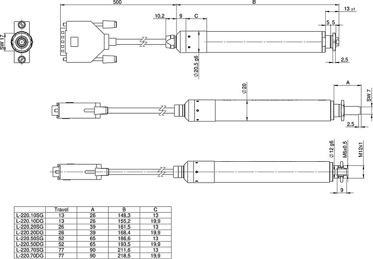 | Bewegen | L-220.10DG | L-220.20DG | L-220.50DG | L-220.70DG | L-220.10SG | L-220.20SG | L-220.50SG | L-220.70SG | Toleranz |