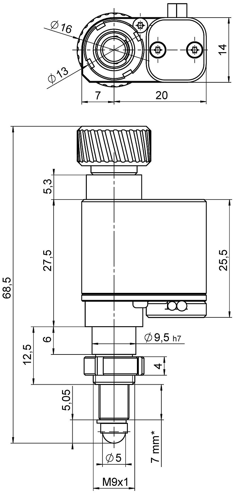 Positionsgeregelter PiezoMike Linearaktor; piezoelektrischer Trägheitsantrieb; 7 mm Stellweg; M10×1 Gewinde; 22 N Vorschubkraft; 2 mm/min maximale Geschwindigkeit; 2 m Kabellänge