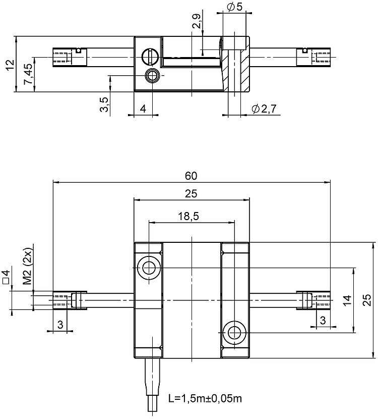 NEXACT® OEM-Miniaturlinearmotor / -aktor; NEXACT® Piezo-Schreitantrieb; 20 mm Stellweg; 10 N Antriebskraft; 10 mm/s maximale Geschwindigkeit; 1,5 m Kabellänge