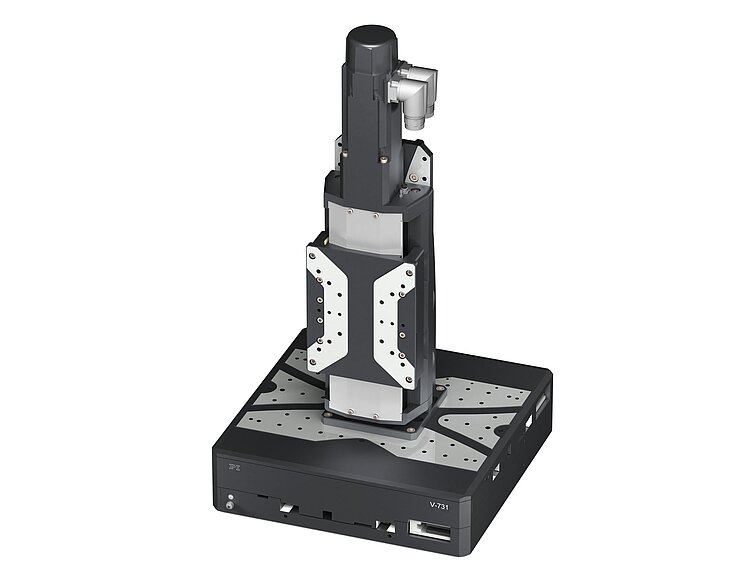 Hochlast-Lineartisch; Synchron-Servomotor bis 320 V; 102 mm Stellweg; 400 N Belastbarkeit; 300 mm/s maximale Geschwindigkeit; Kugelumlaufspindel; Inkrementeller Rotationsencoder, 20000 Impulse/U Auflösung, A/B-Quadratur, RS-422; Absoluter Linearencoder, 1 nm Sensorauflösung, EnDat 2.2; Schleppkette; 116 mm Breite