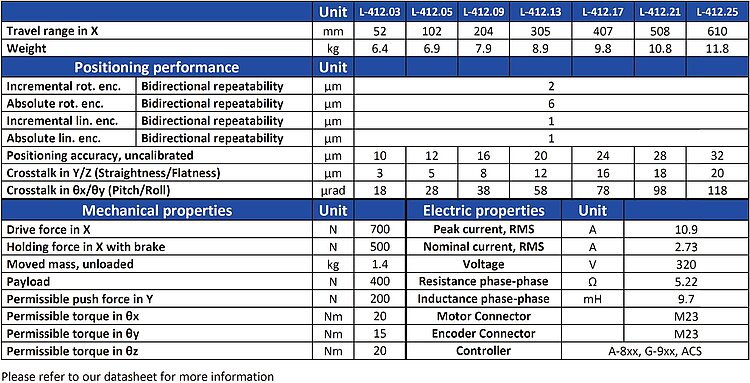 Die Kugelumlaufführungen der L-412-Serie sind auf hohe Belastbarkeit und hohe Dynamik ausgelegt. Mit ihrer hohen Auflösung ermöglichen die Motoren verbessertes Führungsverhalten, kleinere Folgefehler und verbesserte Einschwingzeiten.