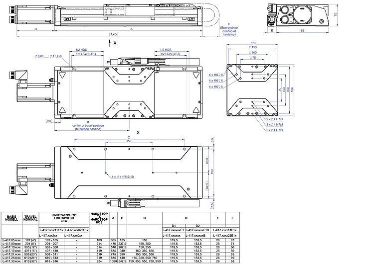 - Versionen mit Linearencoder mit Schleppkette und Anschlussbox (L-417.xxxxxxE1).