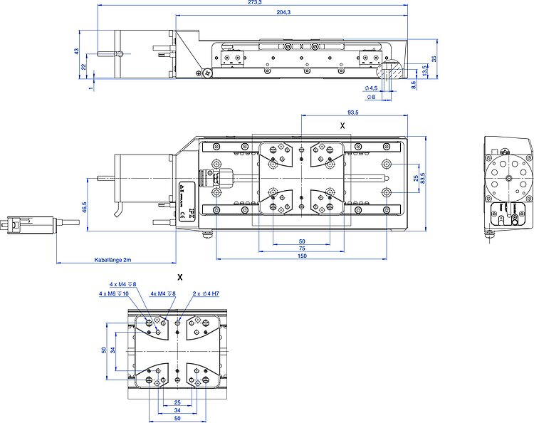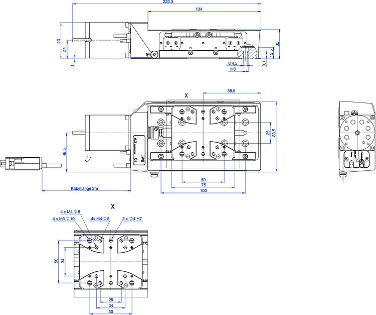 | Stellweg in X | 26 mm | 52 mm | 102 mm | 26 mm | 52 mm | 102 mm | 26 mm | 52 mm | 102 mm | 52 mm | 102 mm | |