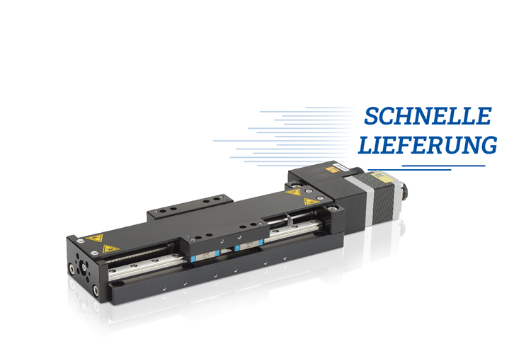 Stapelbarer, hochkompakter, universeller Lineartisch; 2-Phasen-Schrittmotor; 150 mm Stellweg; 150 N Belastbarkeit; 80 mm/s maximale Geschwindigkeit; Kugelumlaufspindel; Inkrementeller Linearencoder, 80 µm Sensorsignalperiode, A/B-Quadratur, RS-422; Elektromagnetische Sicherheitsbremse