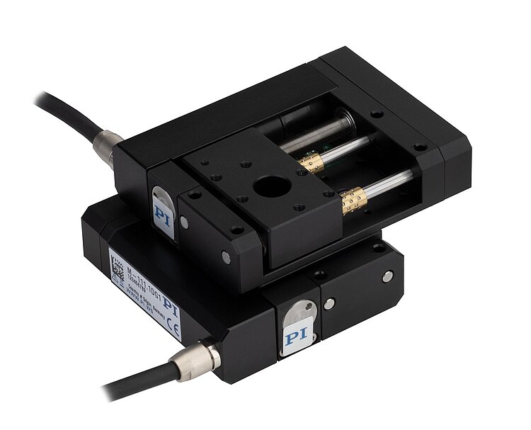 Lineartisch mit kompakter Baugröße durch gefalteten Antrieb mit Riemengetriebe. Freie Apertur mit 10 mm Ø. XY-Aufbauten sind direkt montierbar ohne Adapterplatte.