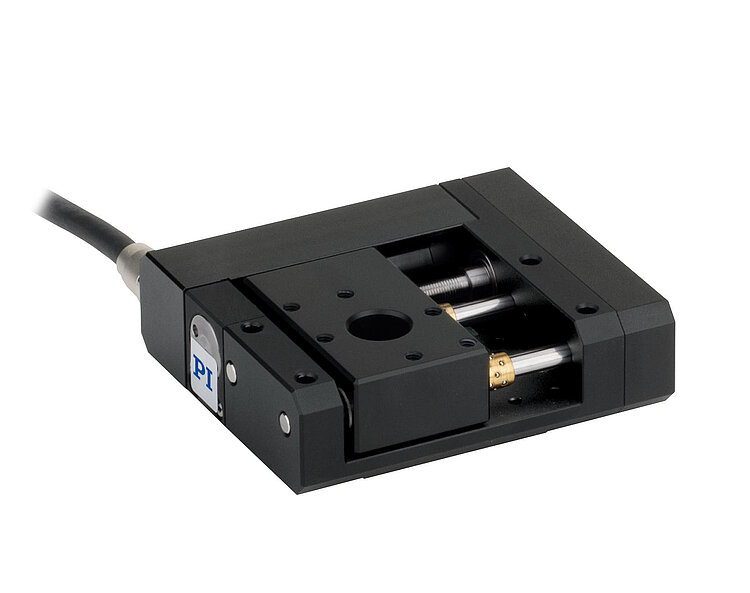 Kompakter Lineartisch; DC-Getriebemotor; 25 mm Stellweg; 20 N Belastbarkeit; 1,5 mm/s maximale Geschwindigkeit; Feingewindespindel; Inkrementeller Rotationsencoder, 2048 Impulse/U Auflösung; 0,5 m Kabellänge
