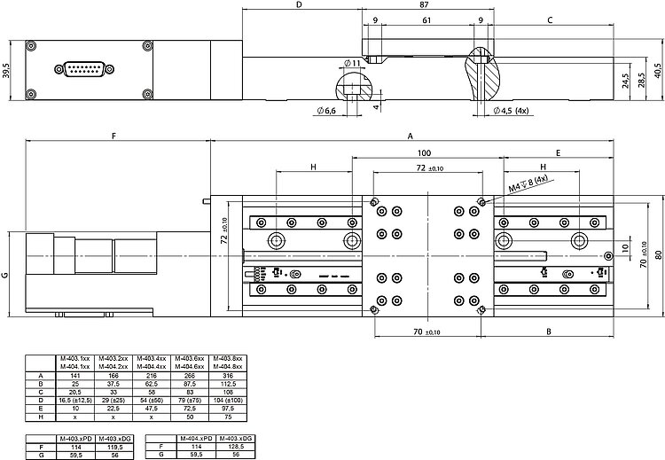 | Bewegen | M-403.1PD | M-403.2PD | M-403.4PD | M-403.6PD | M-403.8PD | M-403.1DG | M-403.2DG | M-403.4DG | M-403.6DG | M-403.8DG | M-403.12S | M-403.22S | M-403.42S | M-403.62S | M-403.82S | Toleranz |