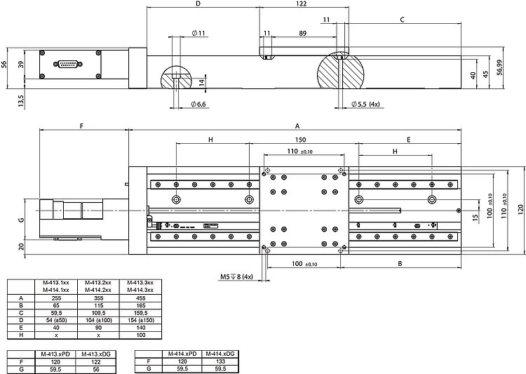 | Bewegen | M-414.1PD | M-414.2PD | M-414.3PD | M-414.1DG | M-414.2DG | M-414.3DG | M-414.12S | M-414.22S | M-414.32S | Toleranz |