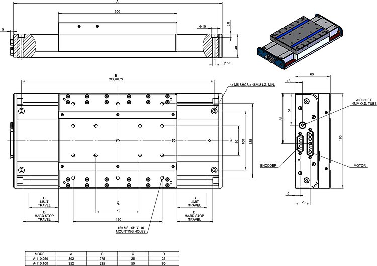 A-110 PIglide LC Lineartisch mit Luftlager