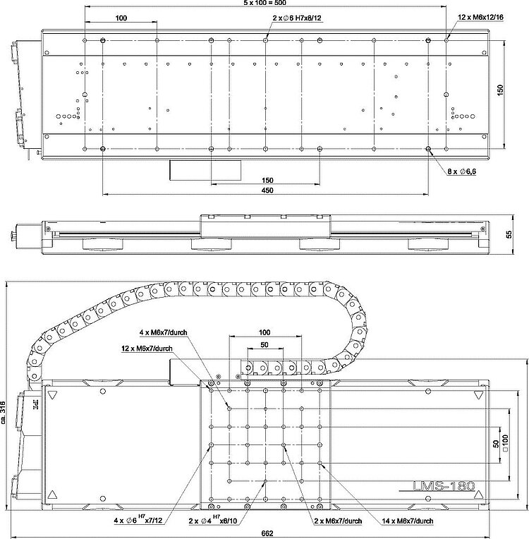| Antriebstyp | Eisenloser 3-Phasen-Linearmotor | |