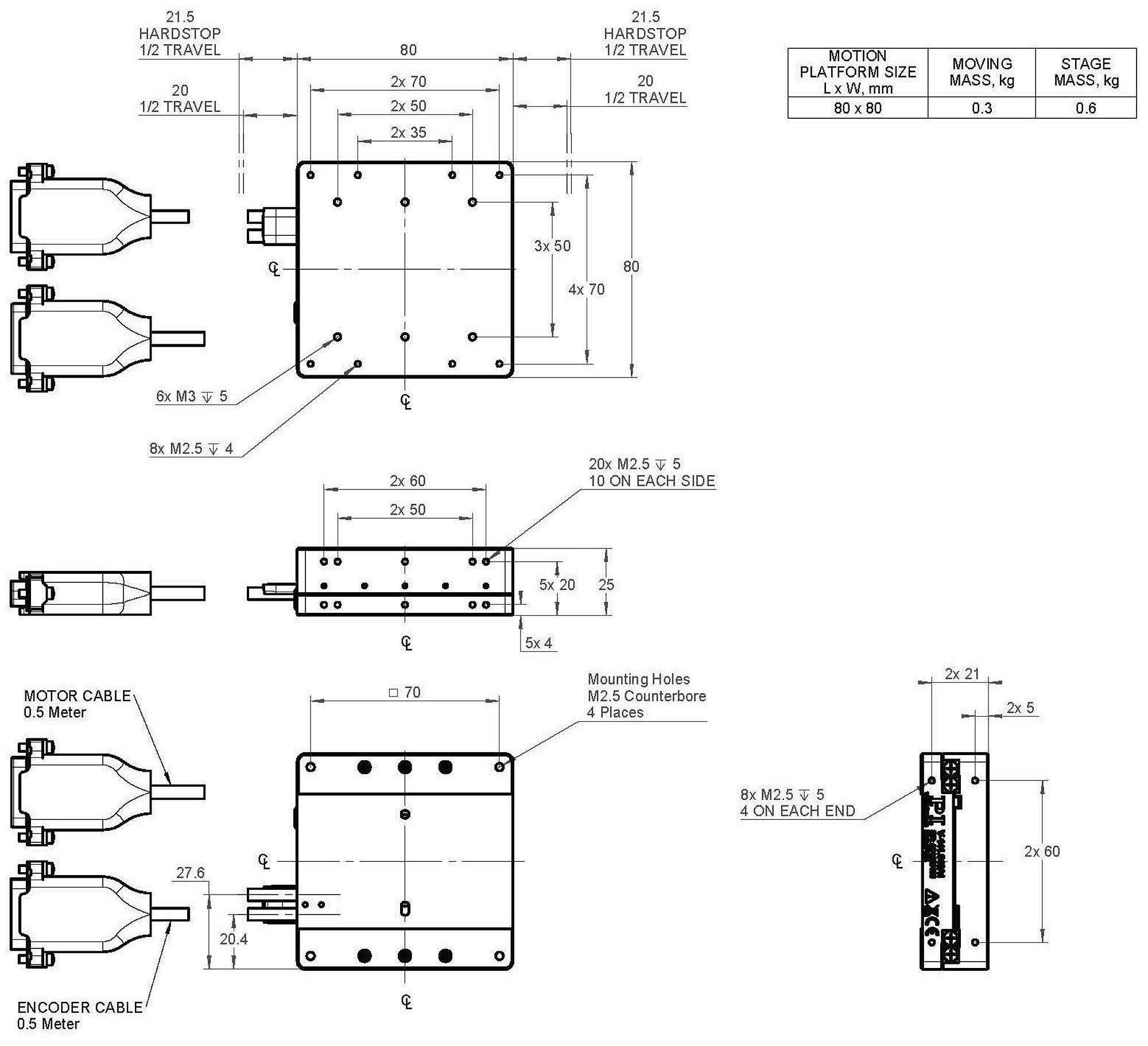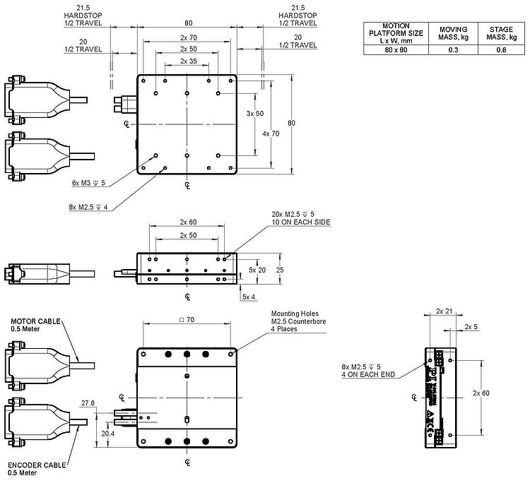 | Abmessungen Bewegungsplattform | 80 × 80 mm | 110 × 80 mm | 170 × 80 mm | |