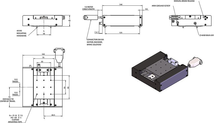 Zum Aufbau eines XYZ-Systems ist für den A-143 die Option zur vertikalen Montage verfügbar, inklusive Bremse und Gegengewicht.