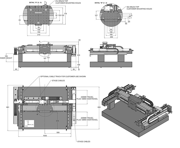 Materialien | Hartbeschichtetes Aluminium Führungsschienen aus Stahl, Reinraumfett (Führungsschienen aus Edelstahl auf Anfrage) Befestigungsmaterial aus Edelstahl |