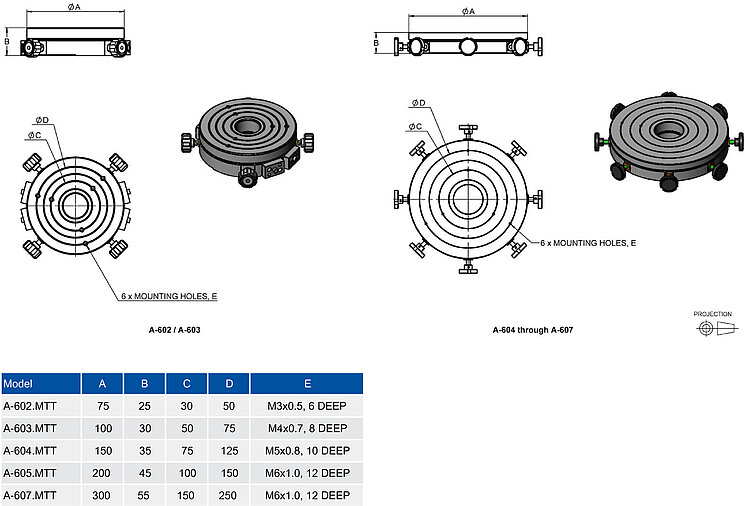 | A-602.MTT | A-603.MTT | A-604.MTT | A-605.MTT | A-607.MTT | Einheit | Toleranz | |