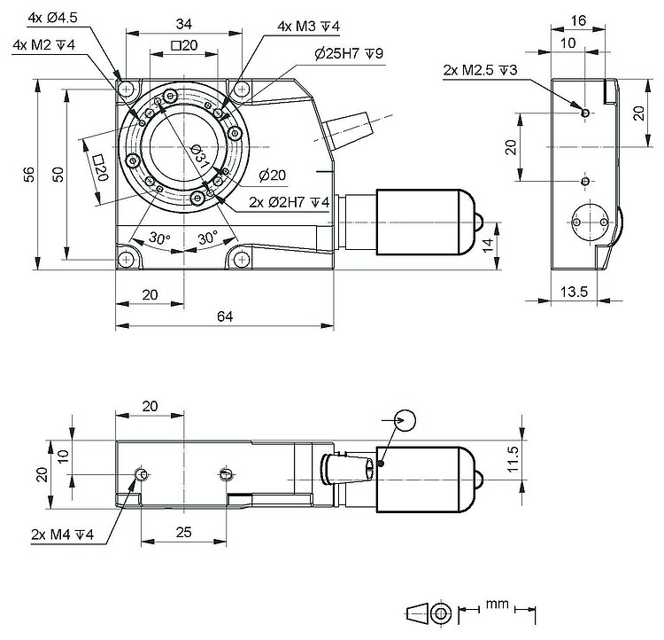 Schneckenantrieb. Apertur mit 20 mm Ø. Referenzschalter.