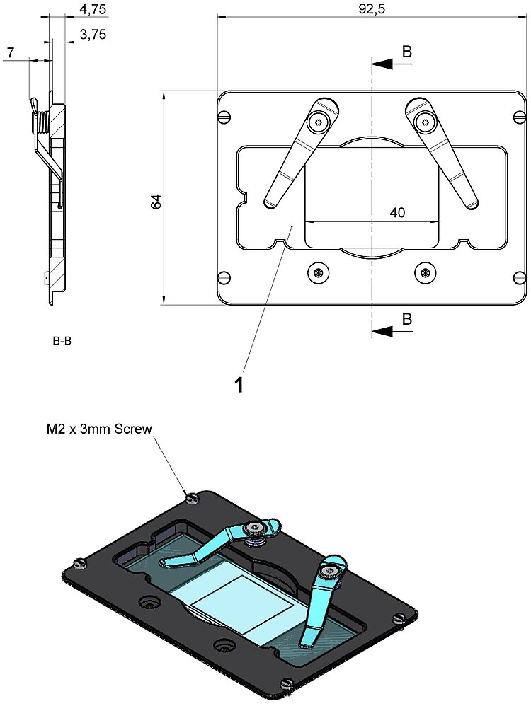 - Freie Apertur für 3×1''-Objektträger, versenkte Einlegerahmen