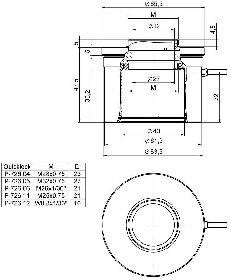 | Mechanisches Interface | Innengewinde M32 (mit QuickLock-Gewindeadapter anpassbar an alle gängigen Gewinde) | |