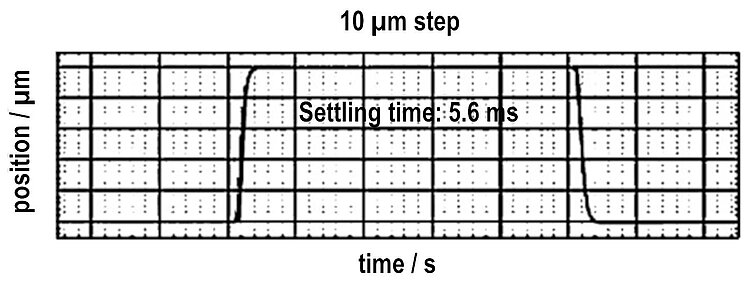 Die Auflösung des Systems wird nur vom Rauschen des Verstärkers und der Messtechnik begrenzt, da PI-Piezo-Nanopositioniersysteme reibungsfrei arbeiten.