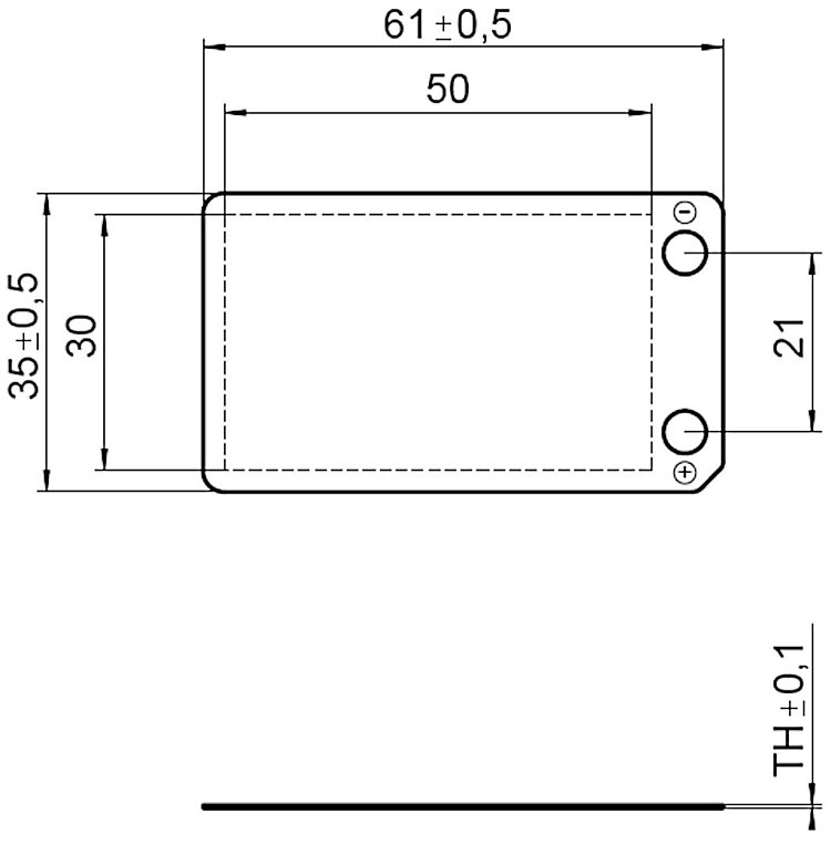 DuraAct Flächenwandler; DuraAct piezoaktorischer Antrieb; 35 mm × 61 mm × 0,8 mm (B × L × TH); lötbare Kontakte