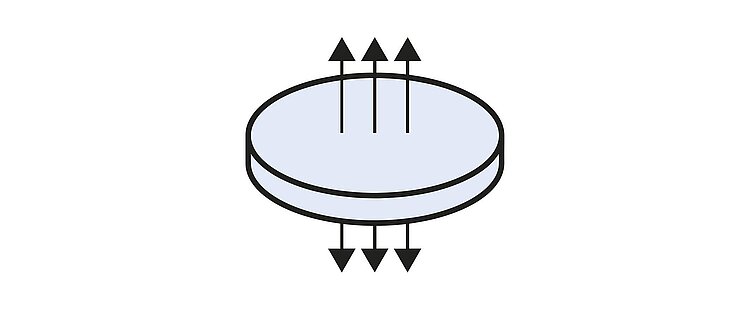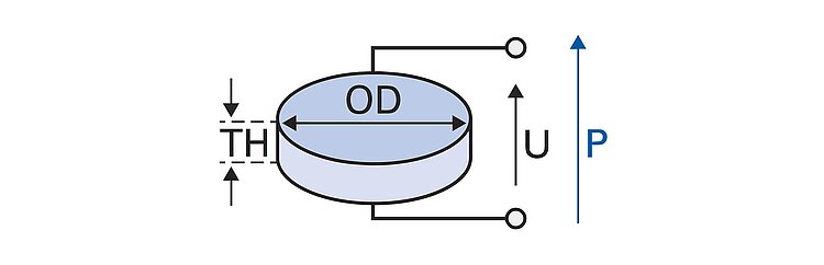 Hinweis zu Resonanzfrequenz (Dicke): Aufgrund der Verkopplung von Dickenschwingung und Radialschwingung kann der tatsächliche Wert um ±5 % (unter 2000 kHz) oder ±10 % (ab 2000 kHz) abweichen.