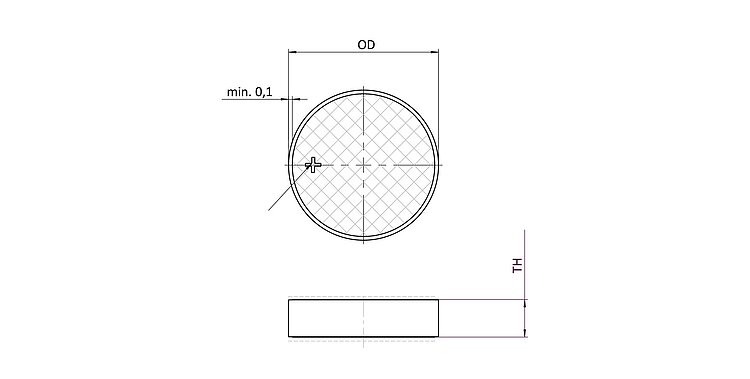 Piezoelektrische Scheibe, Außendurchmesser (OD) = 2 mm × Dicke (TH) = 1 mm, Piezomaterial PIC255, Elektrode Ag siebgedruckt