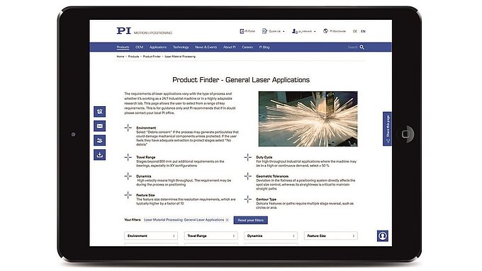 Wählen Sie die >> Produktart anhand der benötigten Bewegungsachsen in Ihrer Anwendung. Oder nutzen Sie die >> Auswahl nach Applikation, und filtern Sie nach wichtigen Kriterien für Ihr spezielles Einsatzgebiet.