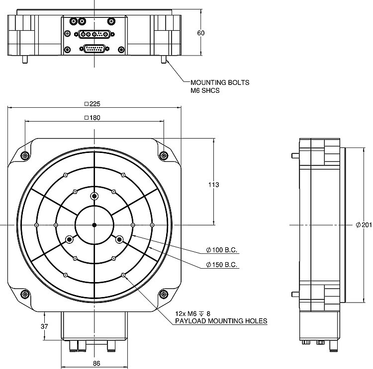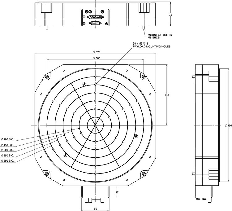 - Durchmesser Bewegungsplattform 150 mm, 200 mm oder 350 mm