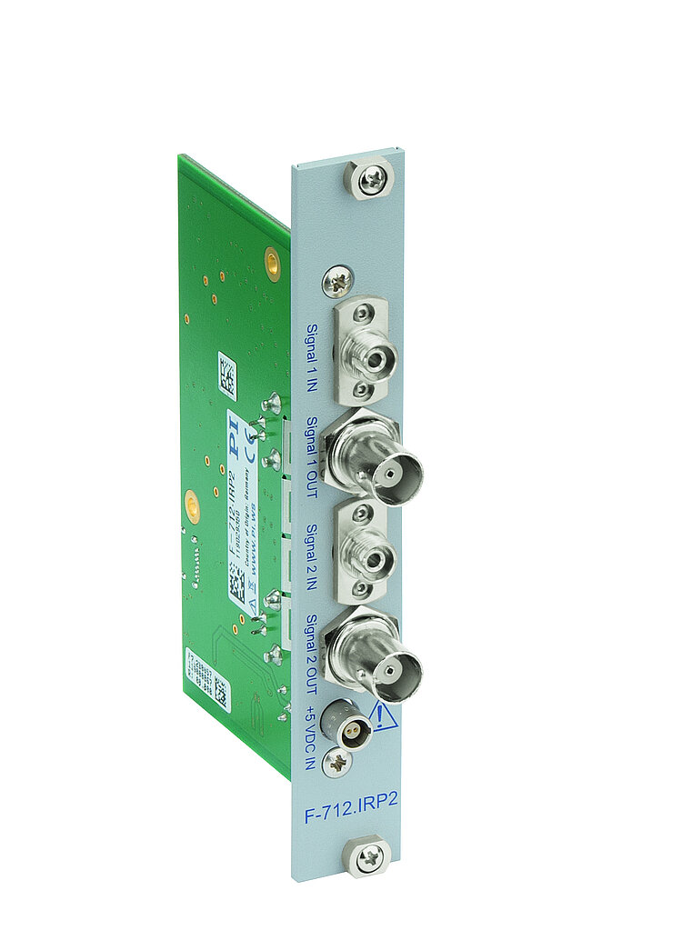 - Ein zweikanaliges Modul ergänzt den E-712-Controller in den F-712-Alignment-Systemen. Die Leistungsversorgung erfolgt dort über E-711.IA4. Ein 0,4 m langes Kabel zum Anschluss an einen Ausgang des E-711.IA4 ist im Lieferumfang enthalten.
