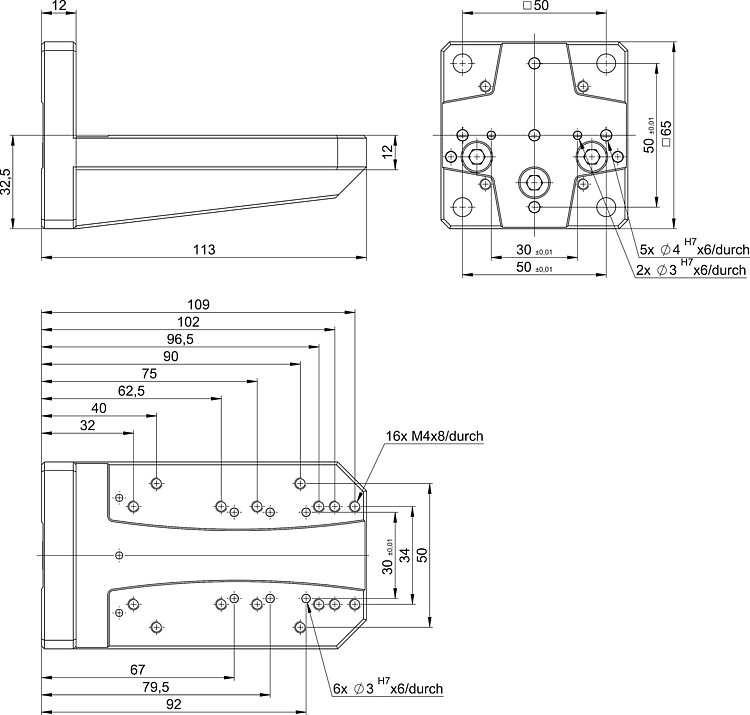 - Adapterwinkel auf Positionierer: Der Adapterwinkel kann auf den bewegten Verfahrtisch des Positionierers montiert werden und bewegt sich entsprechend mit diesem.