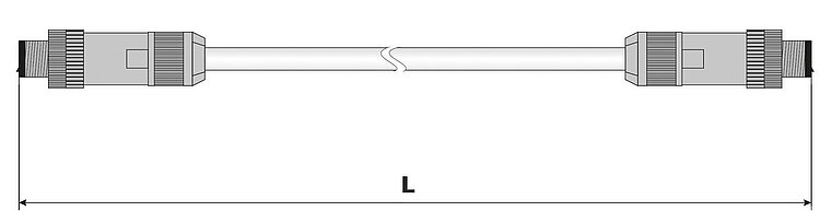 Stromversorgungskabel für Hexapoden, schleppkettentauglich, M12 m/f gerade, 7,5 m
