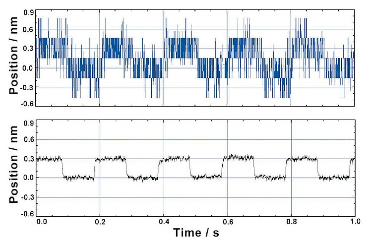 Kapazitive Sensoren erreichen über kleine Wege Auflösungen bis in den Pikometerbereich. Die theoretische Messauflösung ist unbegrenzt. In der Praxis beeinflussen Streustrahlung, Geometrieeffekte und das Rauschen der Messelektronik die erreichbare Genauigkeit. Der effektive Rauschfaktor des D-100.00 Sensors (100 µm) in Verbindung mit der E-509.C1A Elektronik liegt bei 0,02 nm/√Hz. Bei 100 Hz Bandbreite z. B. entspricht das einer Auflösung von 0,2 nm. Die durch Jumper einstellbare Bandbreite der Elektronik beträgt bis zu 3 kHz.