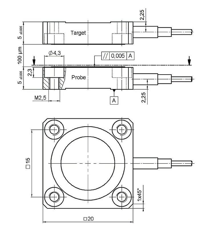 Kapazitiver Zweiplatten-Positionssensor, 100 µm nominaler Messbereich, Aluminium
