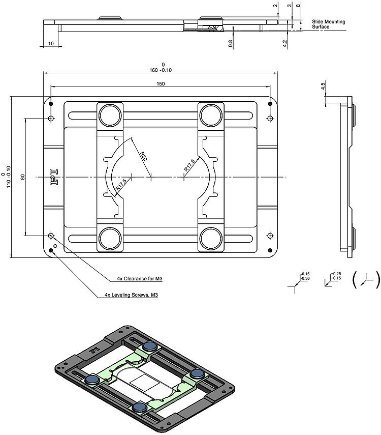 Universalhalter für Objektträger und Petrischalen, für PD73Z2COW / PD73Z2ROW PInano® Z-Piezoscannersysteme (kompatibel mit U-780.DOS-Systemen für Olympus-Mikroskope)