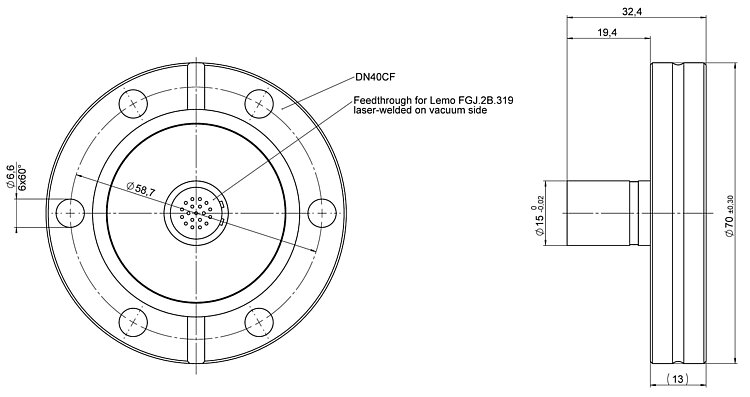 Vakuumdurchführung (Antriebs- und Sensorsignale), LEMO 19-pol. (m/m), DN40CF