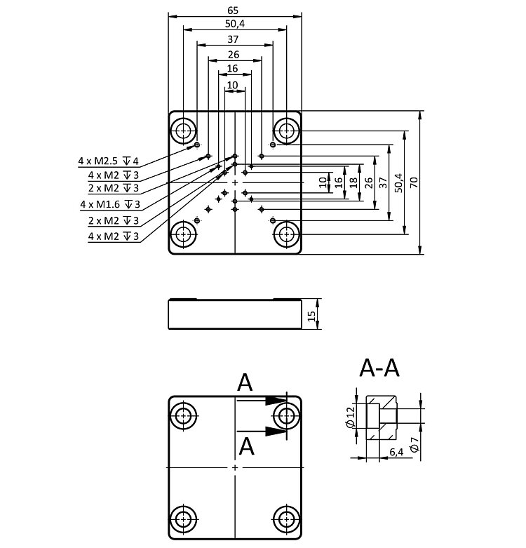 Adapterplatte für Q-Motion® Positionierer auf Steckplatinen mit 25-mm- oder 1-Zoll-Raster