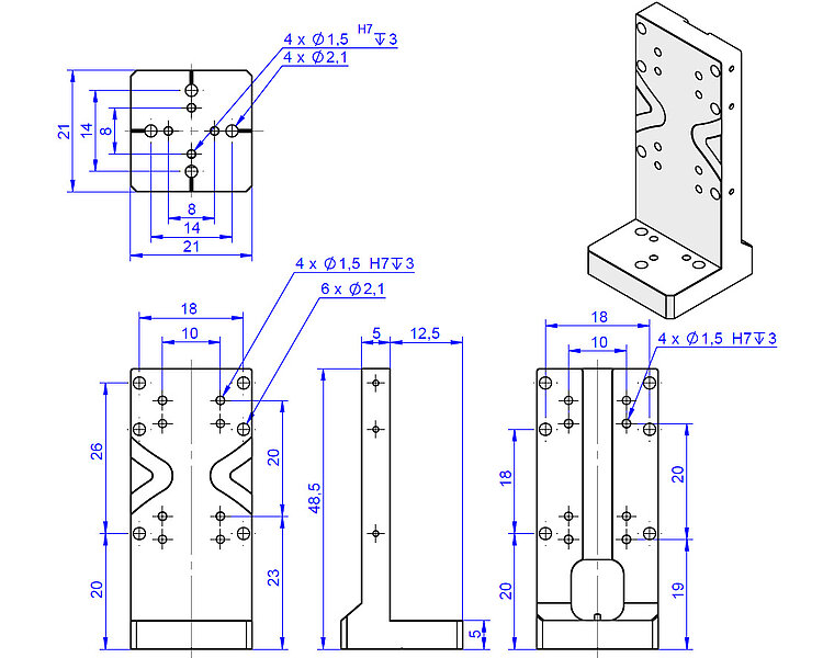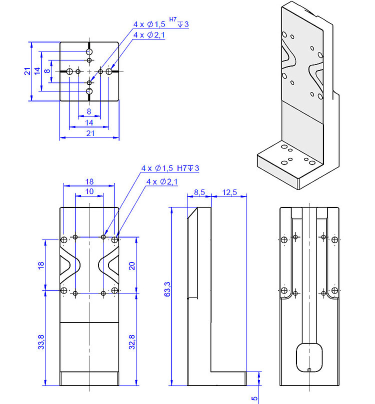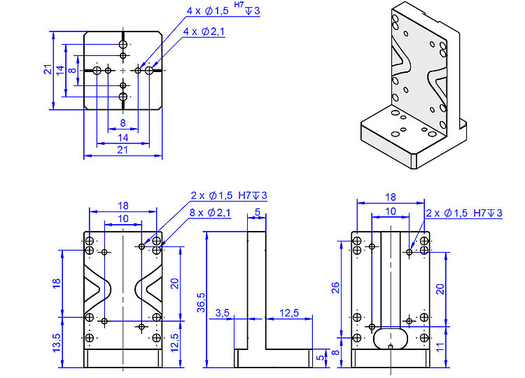 Adapterwinkel für die vertikale Montage von Q-521 Miniatur-Lineartischen mit 12 mm Stellweg, nicht eloxiert