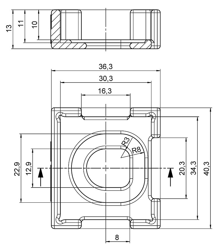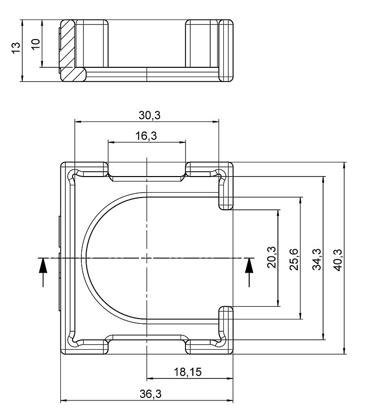 Für Modelle ohne Spiegel der S-335-Reihe können Zentrierhilfen zum Aufkleben eines Spiegels genutzt werden. Während des Klebens wird der Spiegel von der Zentrierhilfe zuverlässig an der gewünschten Position fixiert.