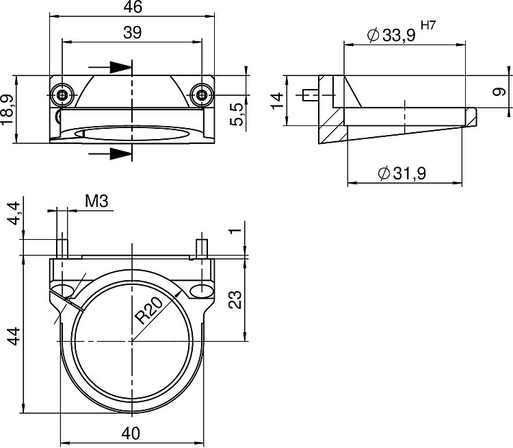 Objektivhalter für V-308 zur horizontalen Montage